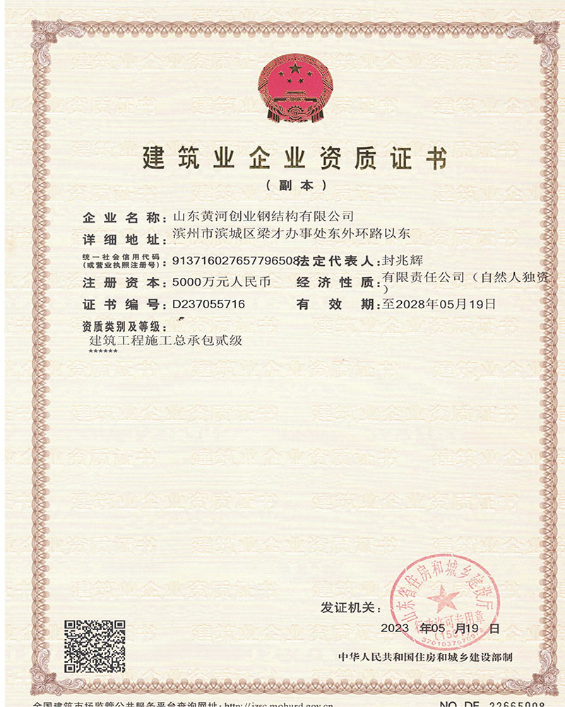 工程施工總承包貳級資質(zhì)